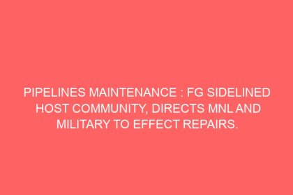 PIPELINES MAINTENANCE : FG SIDELINED HOST COMMUNITY, DIRECTS MNL AND MILITARY TO EFFECT REPAIRS.