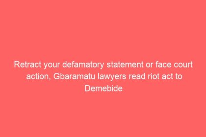 Retract your defamatory statement or face court action, Gbaramatu lawyers read riot…