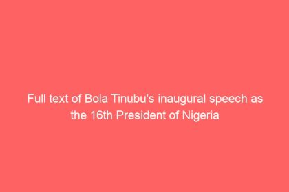 Full text of Bola Tinubu's inaugural speech as the 16th President of…