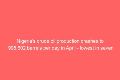 Nigeria’s crude oil production crashes to 998,602 barrels per day in April…