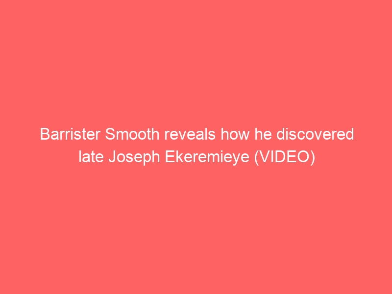 Barrister Smooth reveals how he discovered late Joseph Ekeremieye (VIDEO)