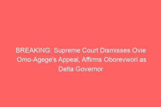 BREAKING: Supreme Court Dismisses Ovie Omo-Agege’s Appeal, Affirms Oborevwori as Delta Governor