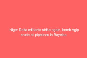 Niger Delta militants strike again, bomb Agip crude oil pipelines in Bayelsa