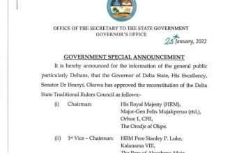 The governor of Delta State, Dr. Ifeanyi Okowa, has approved the reconstitution…