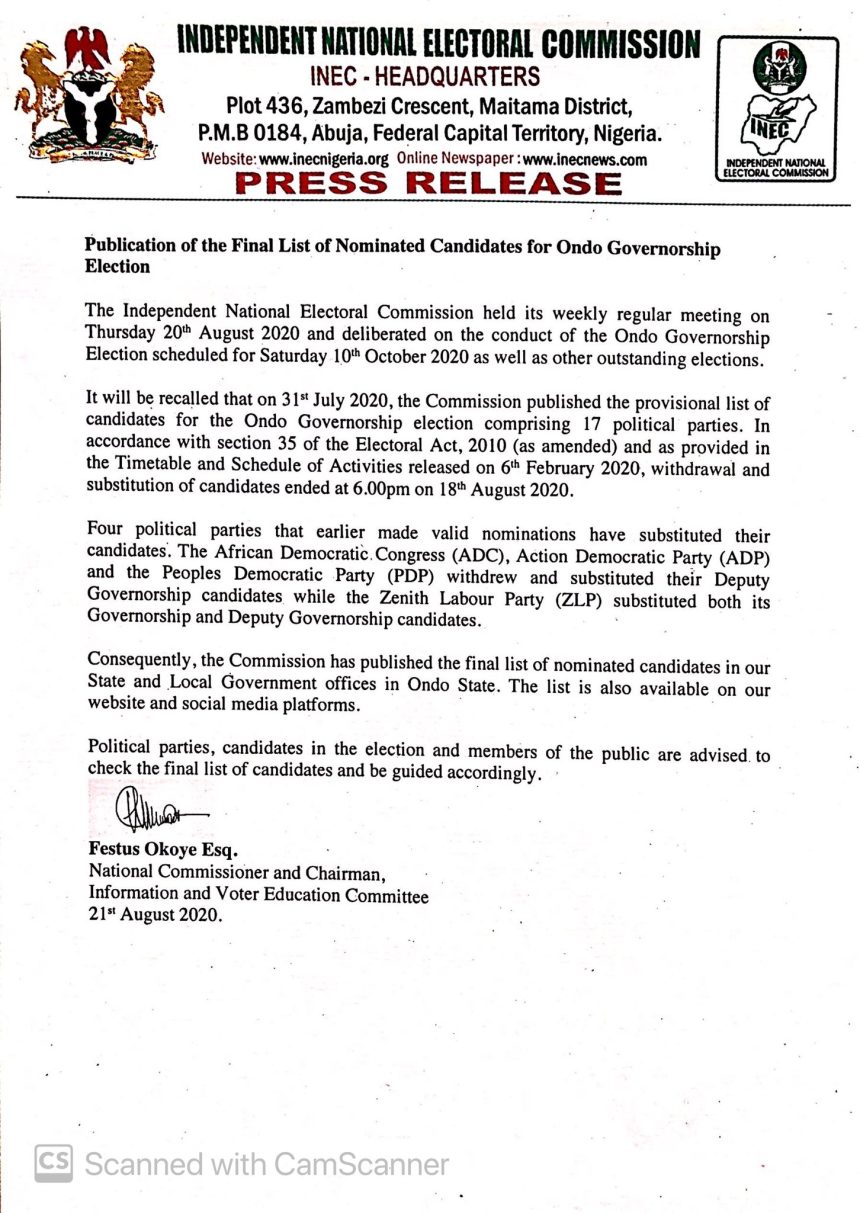 Governor Olurotimi Akeredolu of Ondo State has imposed a 24-hour curfew on…