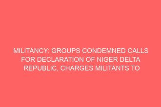 MILITANCY: GROUPS CONDEMNED CALLS FOR DECLARATION OF NIGER DELTA REPUBLIC, CHARGES MILITANTS TO EMBRACE FG DIALOGUE OPTION.