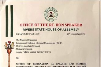 Rt Hon Edison Ehie has resigned as a member representing Ahoada East…