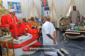 [PHOTOS] Moment Timipre Sylva stormed Gbaramatu for Amasiekumor festival, received royal blessings from Gbaramatu monarch