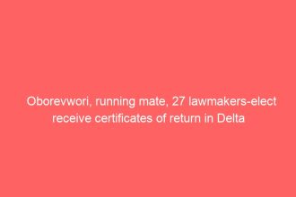 Oborevwori, running mate, 27 lawmakers-elect receive certificates of return in Delta Delta…