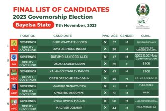 BAYELSA 2023: Final list of governorship candidates, their running mates, ages and educational qualifications