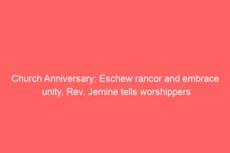 Church Anniversary: Eschew rancor and embrace unity, Rev. Jemine tells worshippers
