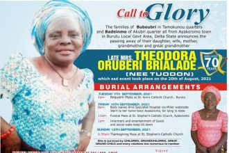 Burial announcement of Mrs Theodora Oruberi Brialade