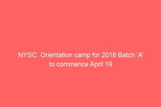 The National Youth Service Corps, will on Thursday, April 19, commence Orientation…
