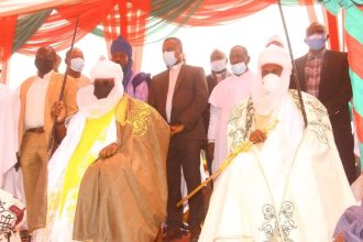 Emir of Daura, HRH Faruk Umar Faruk, turbans the Minister of Transportation,…