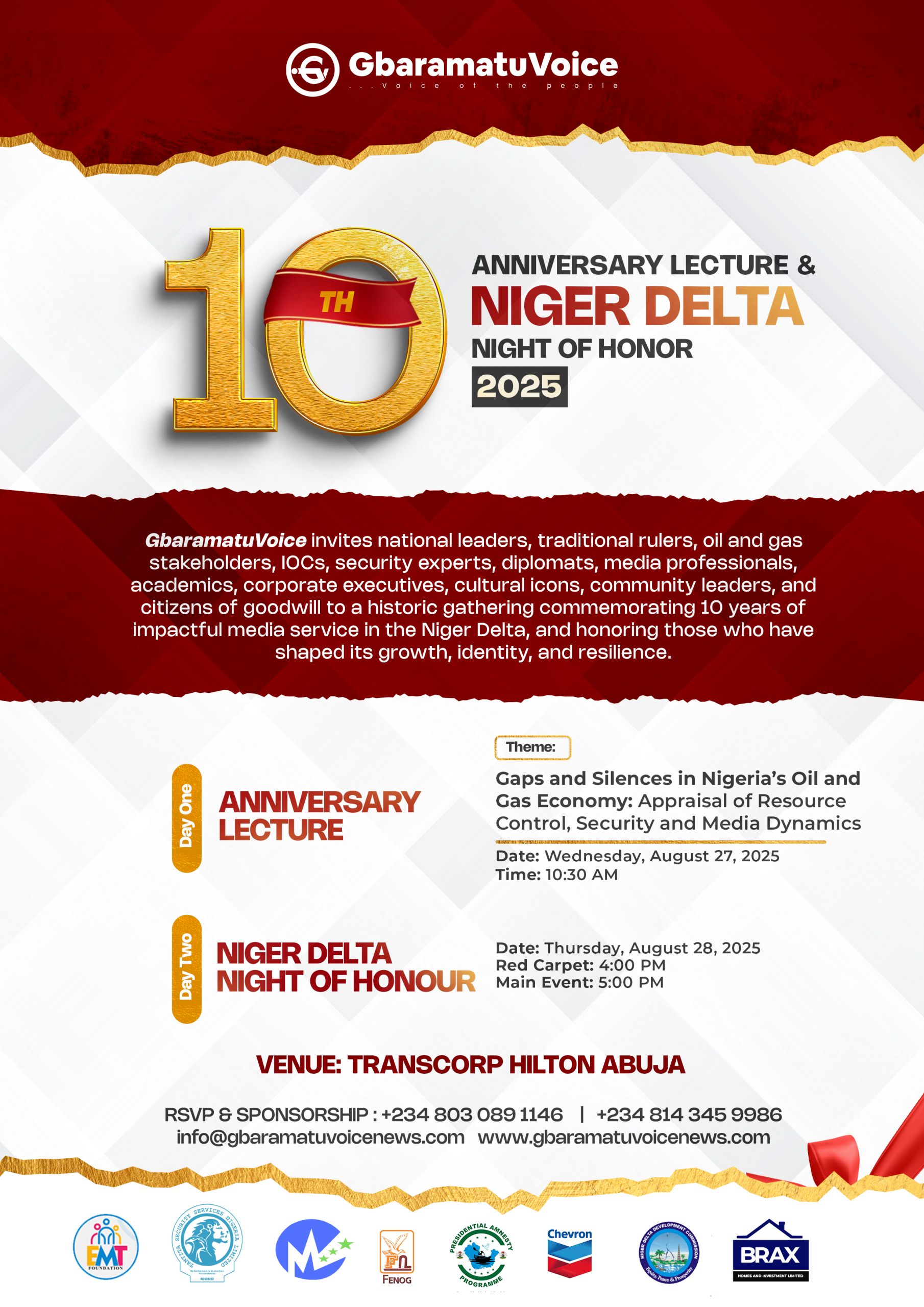 As GbaramatuVoice prepares to mark its 10th Anniversary Celebration, major media houses across Nigeria have begun amplifying the significance of the event, placing it at the center of national conversations around journalism, development, and governance in the Niger Delta.