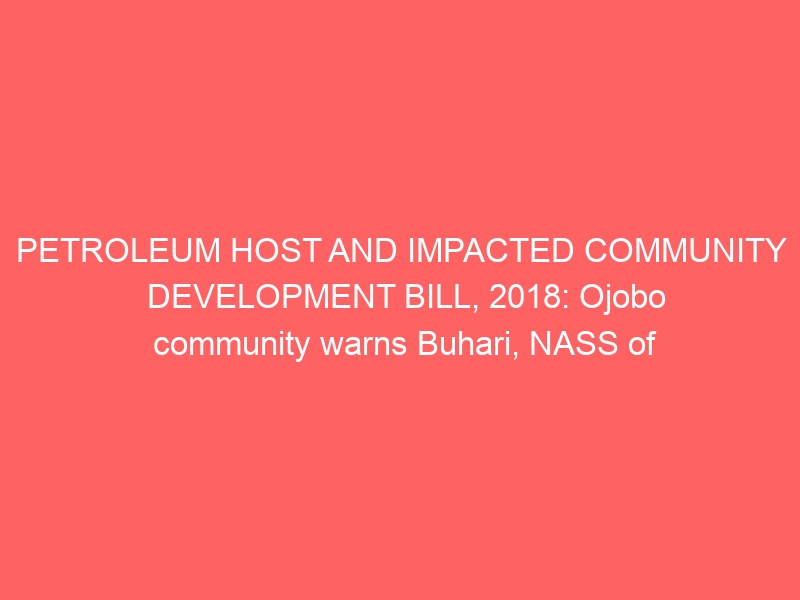 PETROLEUM HOST AND IMPACTED COMMUNITY DEVELOPMENT BILL, 2018: Ojobo community warns Buhari, NASS of impending crisis