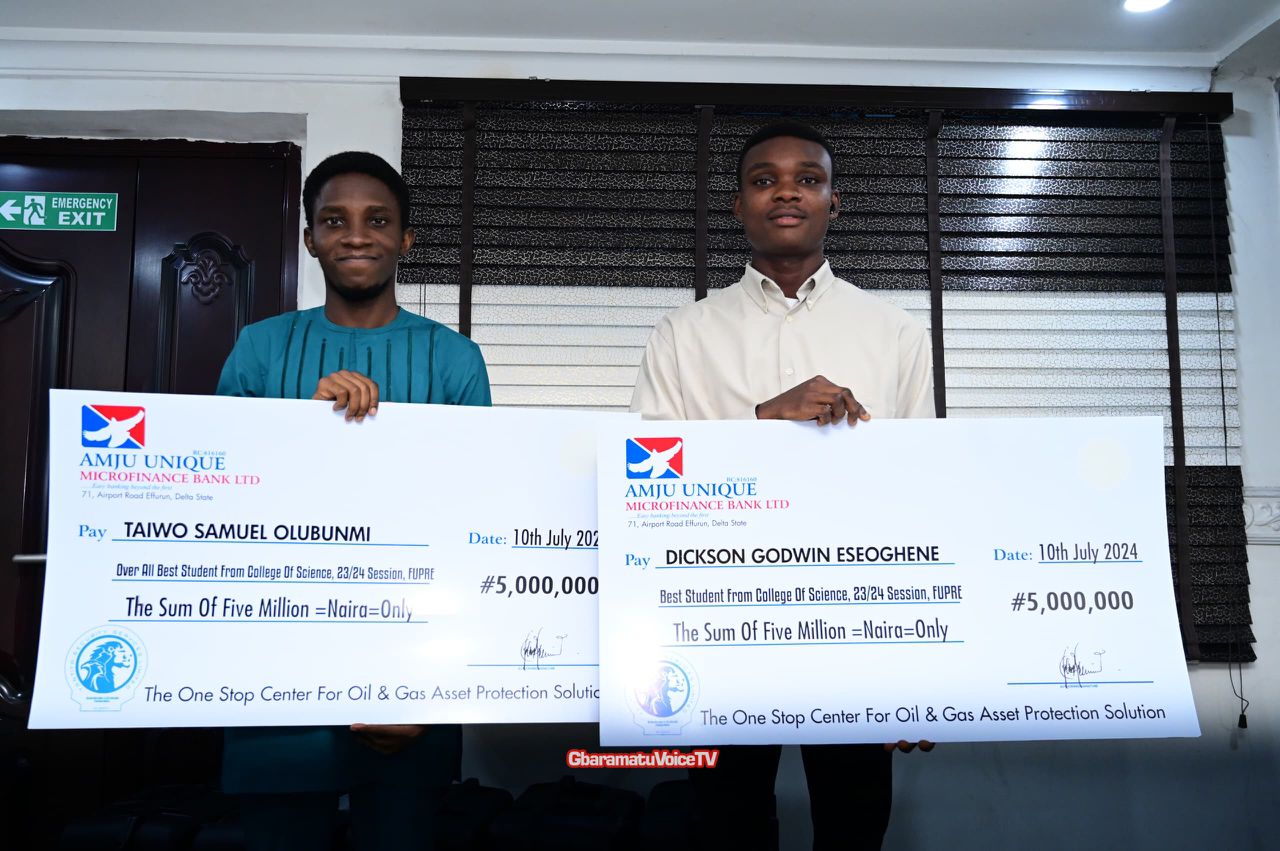 The management of Tantita Security Services Nigeria Limited (TSSNL) has presented N5 million each to the two best graduating students of the Federal University of Petroleum Resources (FUPRE) for 2024. The presentation took place on Wednesday at the Tantita Head Office in Bendel Estate, Ugborikoko, Uvwie Local Government Area of Delta state. Additionally, the Godfrey Pondi Book Club awarded N2 million each to the same students.
